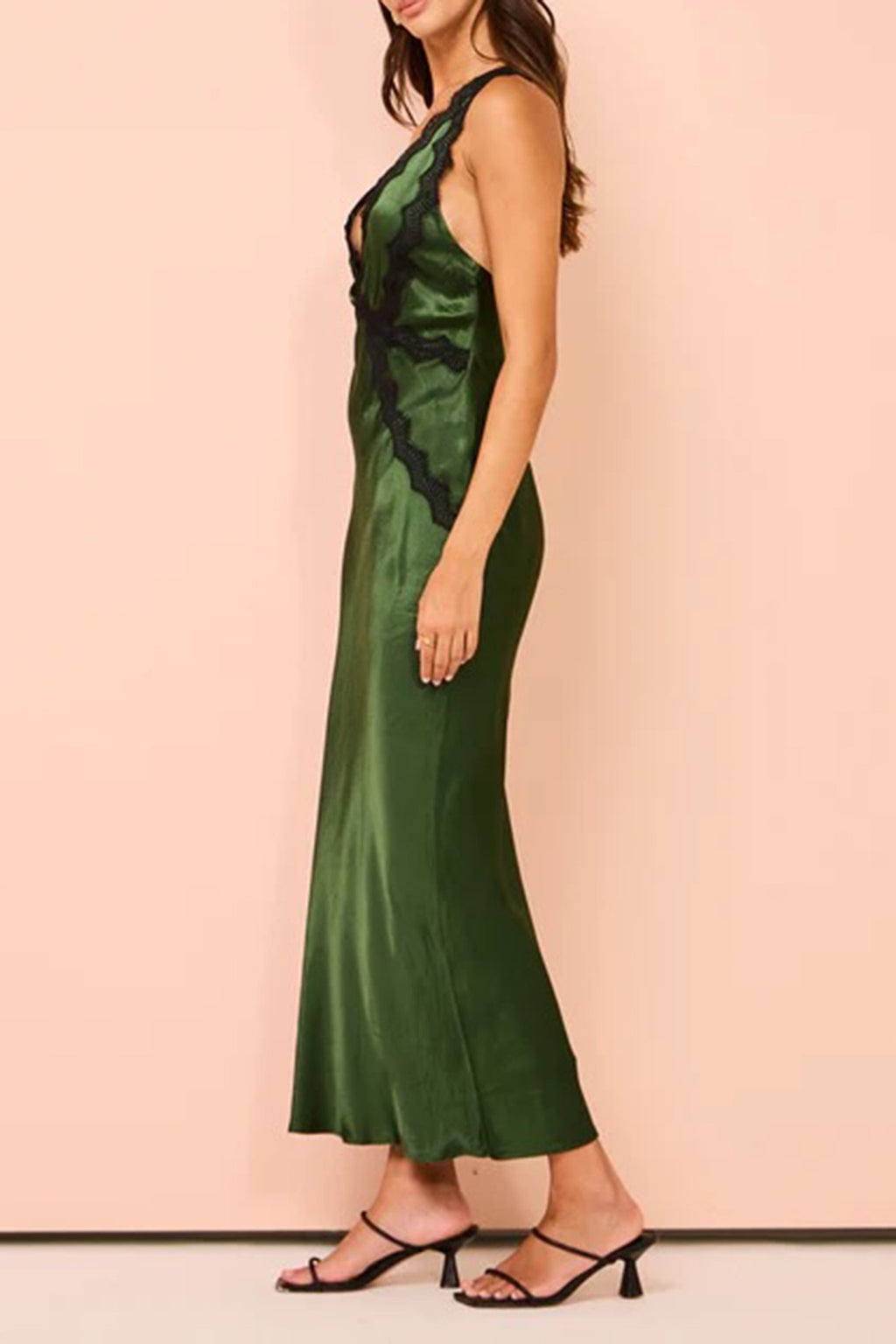 The Camille midi by Shona Joy is a stunning piece which features a plunge front, open back with cross over straps & lace details. It has an exaggerated empire waistline & midi length bias cut skirt.