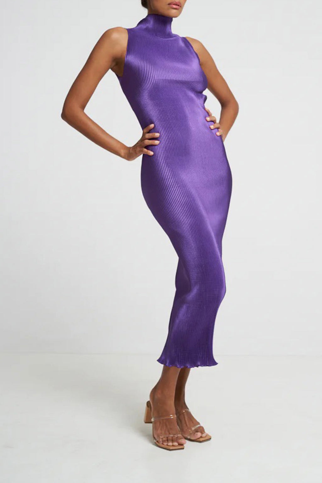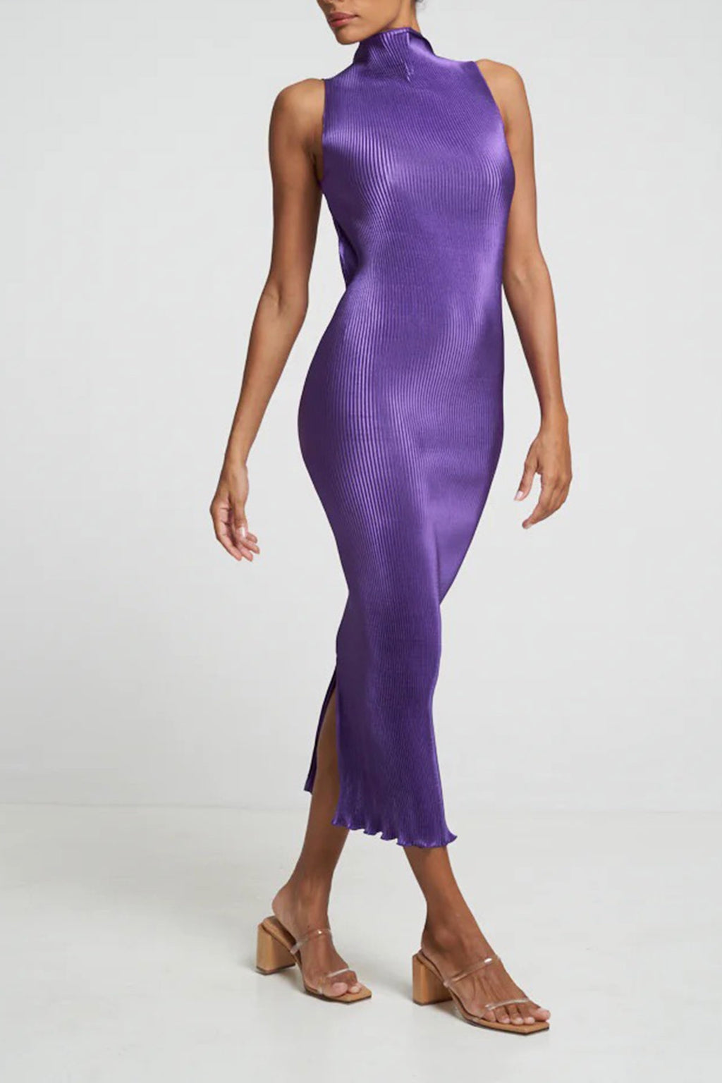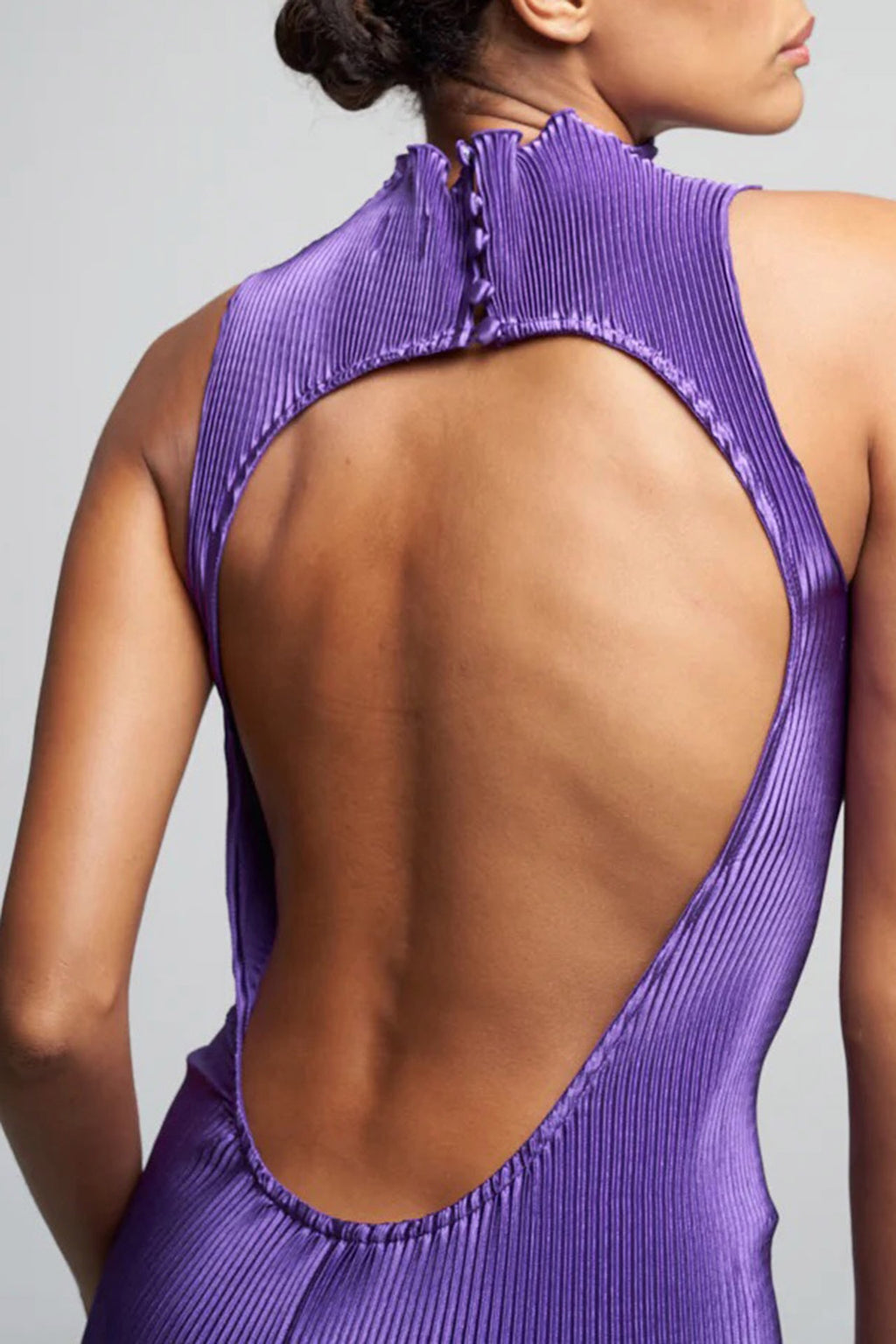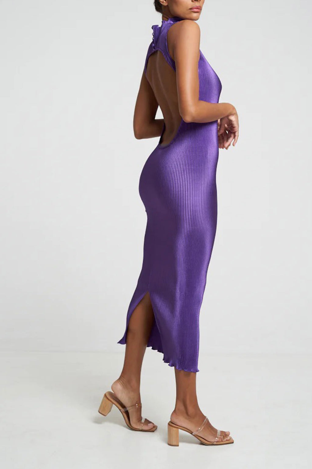 Another beautiful gown by Lidee. The Gisele features hign neckline, back split & a figure hugging pleated silhouette with open back detail.