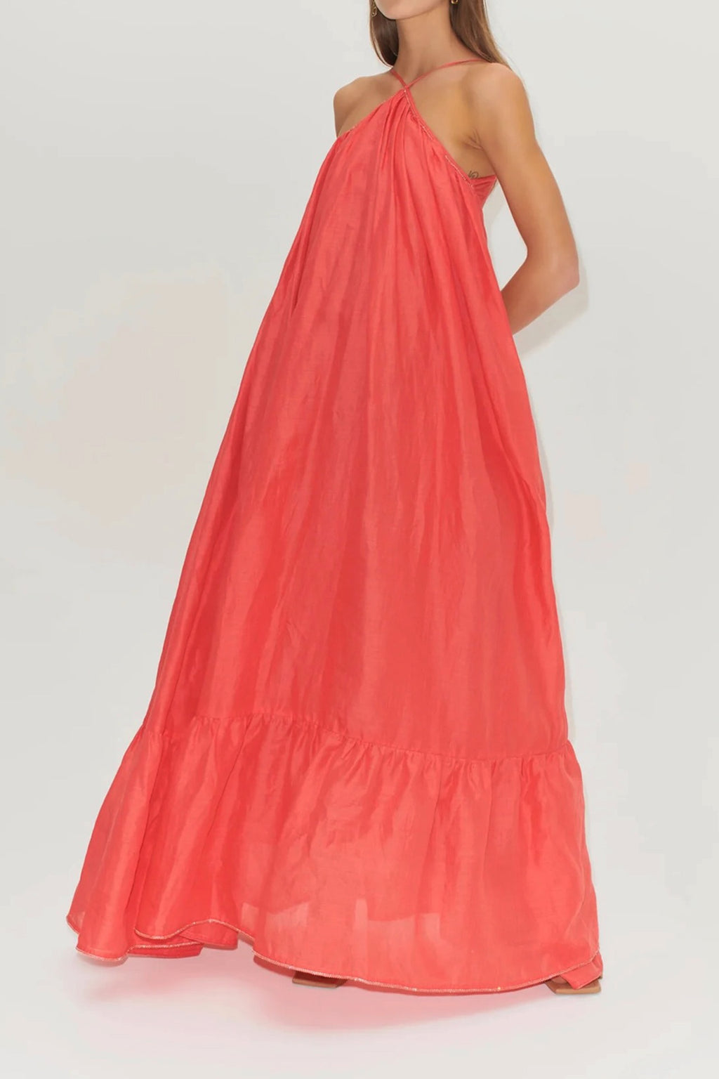 The Lordés Gown by Hansen & Gretel is a gorgeous design. It features a halter neckline, scoop back & relaxed fit from neck down. Neckline, back & hem are finished with a shimmering diamonte trim.