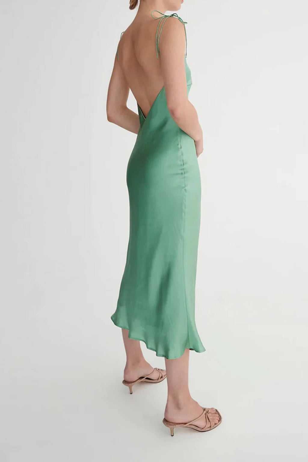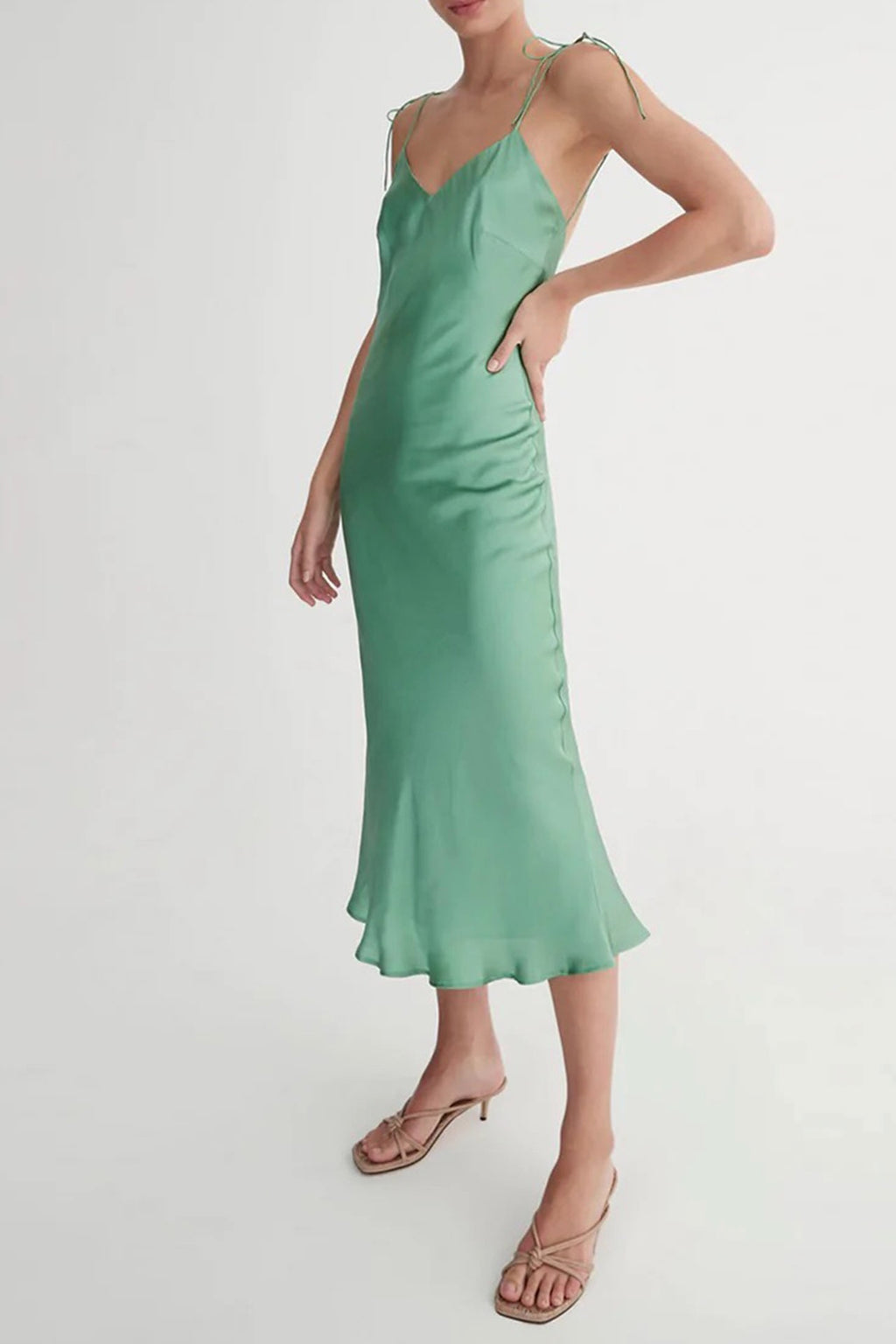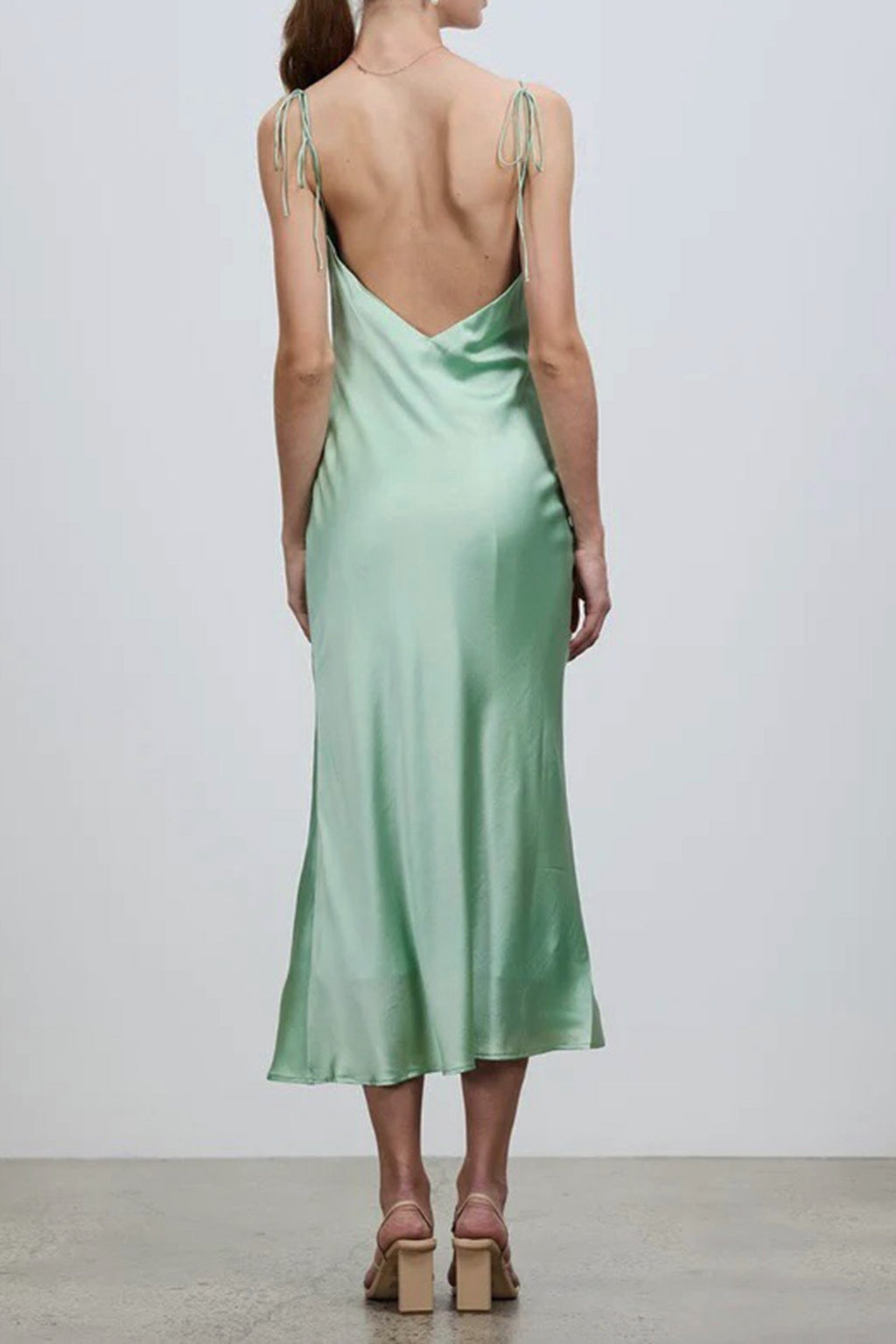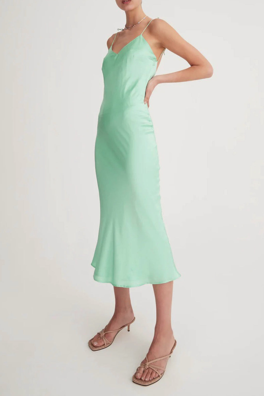 A stunning slip by Hansen & Gretel. The Mimi features tie straps, V neckline, low back, slip on design in a stunning mint green satin type fabric. Fully lined.