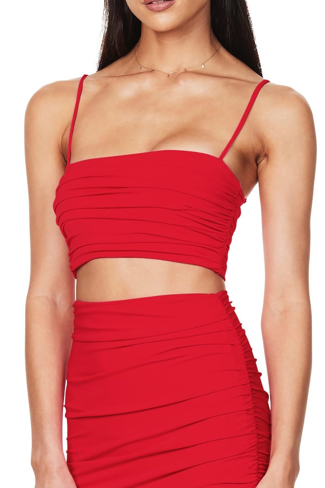 A stunning set by Nookie. The Aria set is made from a super soft jersey material. It features gathers throughout, adjustable straps to top & high waisted skirt & thigh high split.