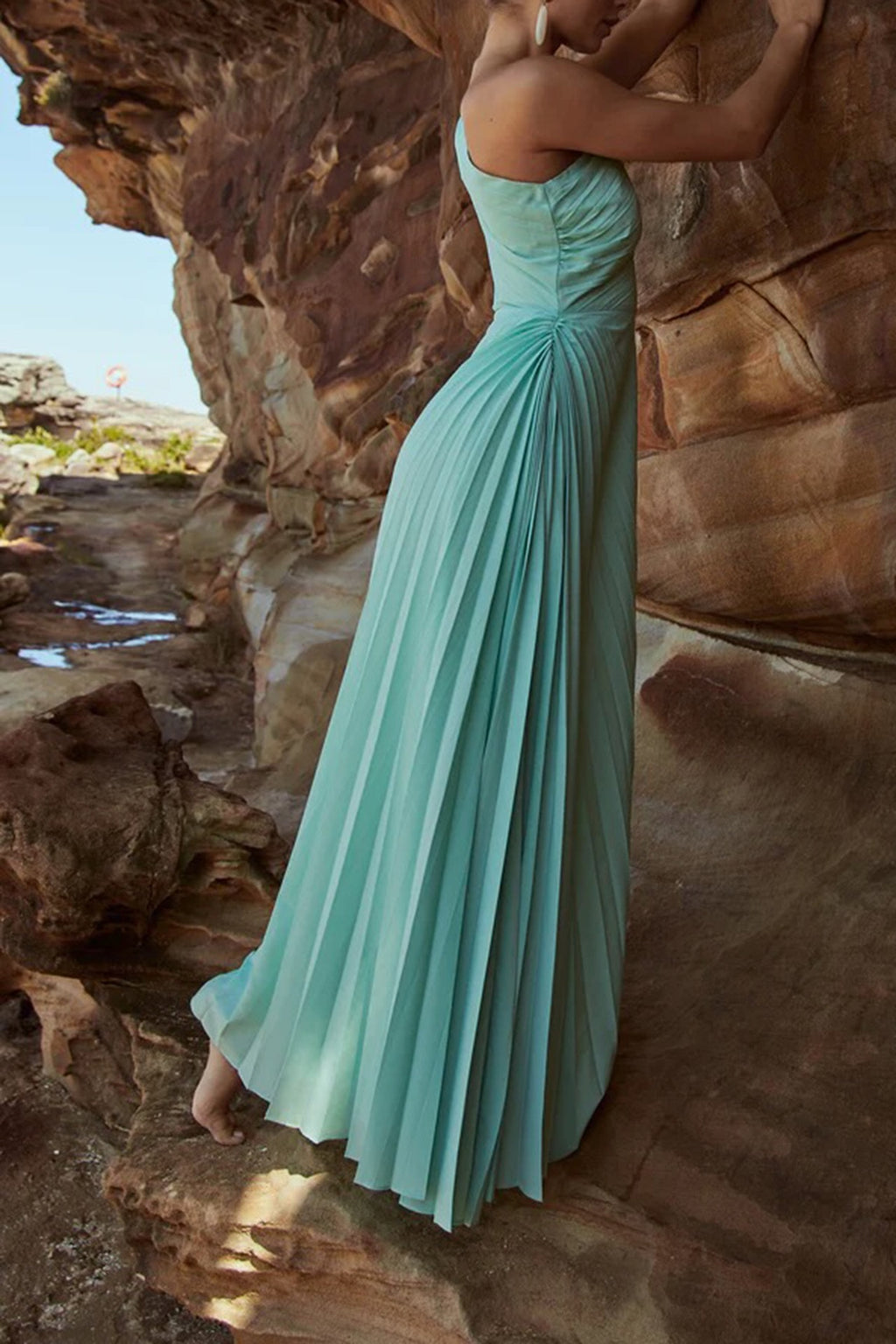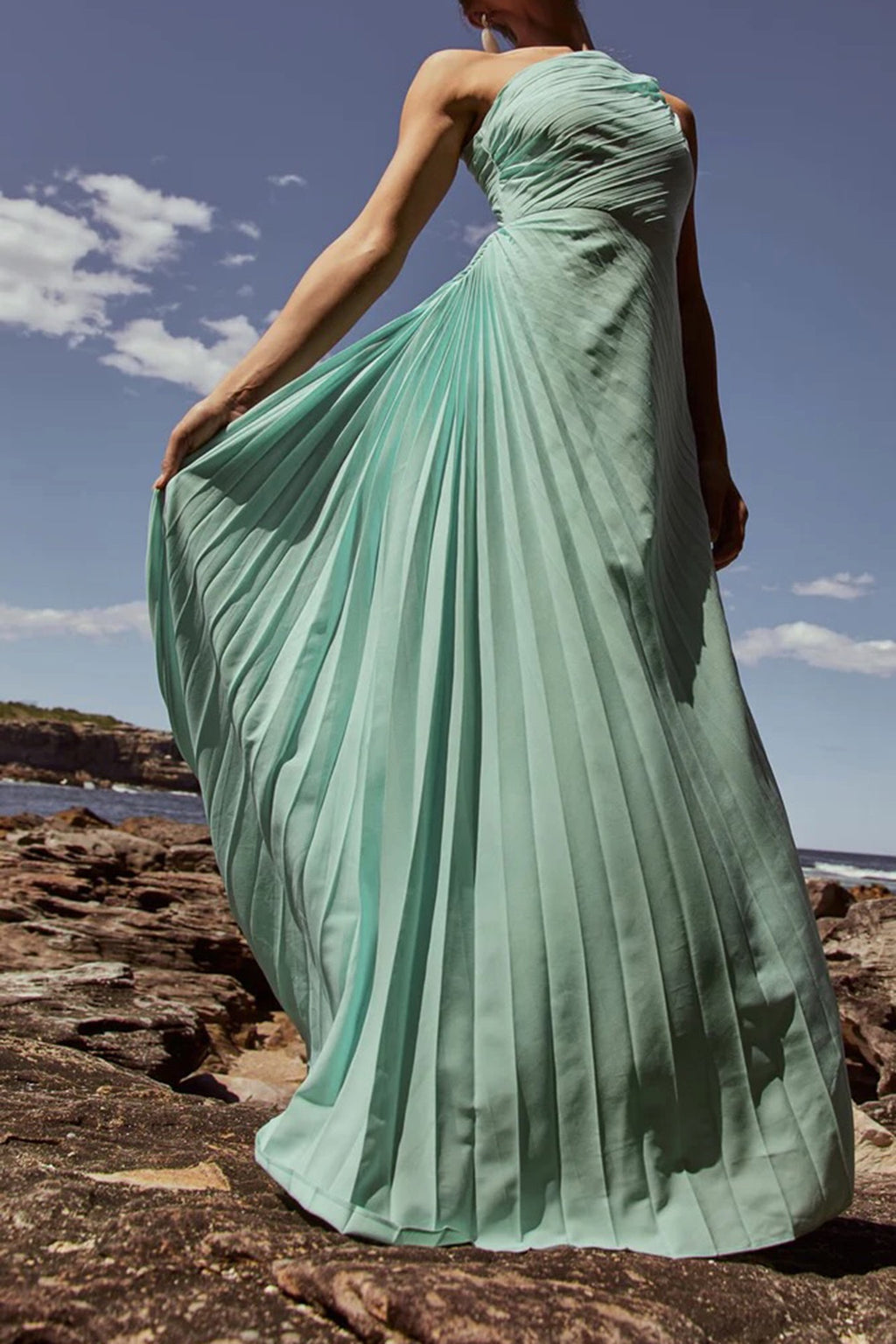 The Azalea Gown by Sonya features a one-shoulder silhouette designed with pleats cut on the biased and artfully gathered on the hip. All eyes will be on you in this gorgeous timeless gown.