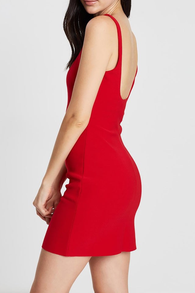 A beautiful bright red mini by Bec & Bridge. It features square neckline and low back.