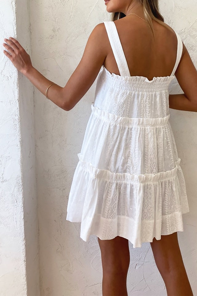 Loving this new mini from Shona Joy. The Cosmo mini is made from a textured linen with embroidered details throughout. It features shirred details, ruffles, tiered details & side pockets.