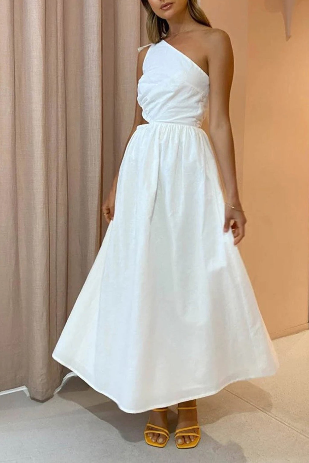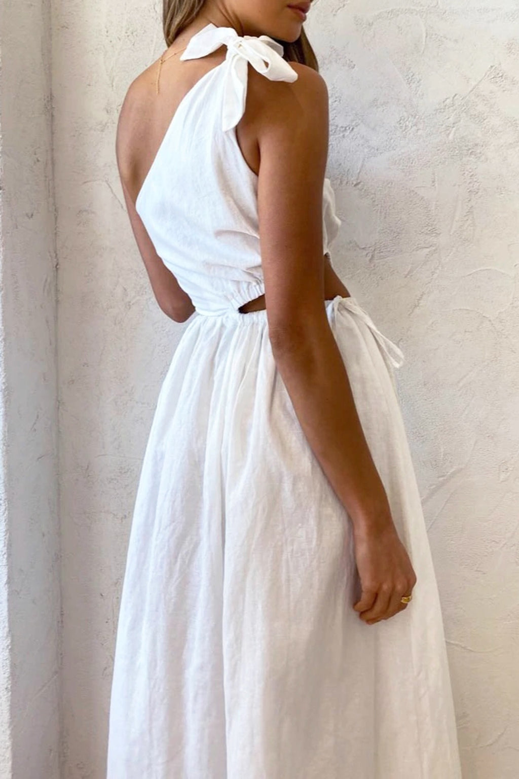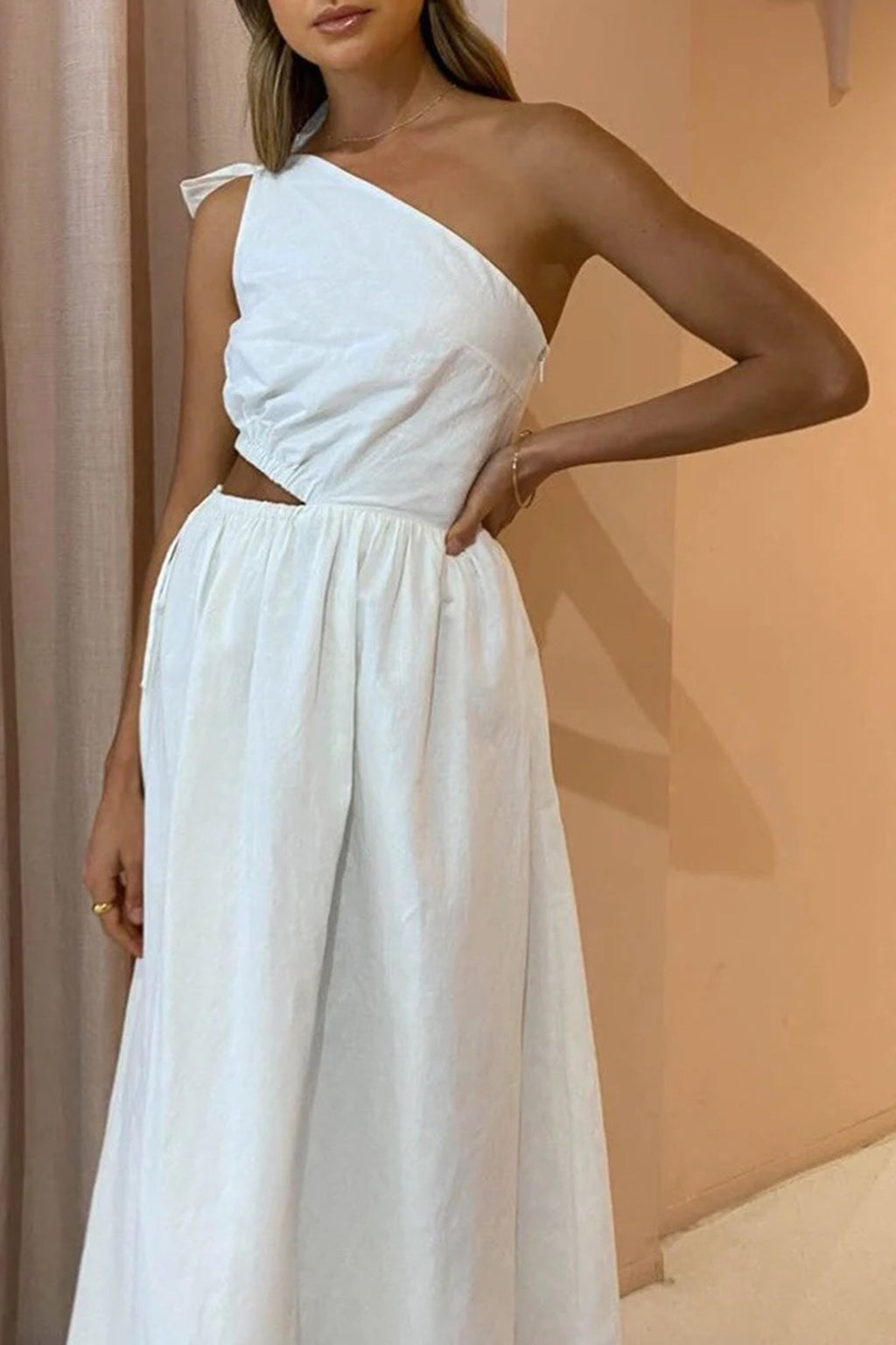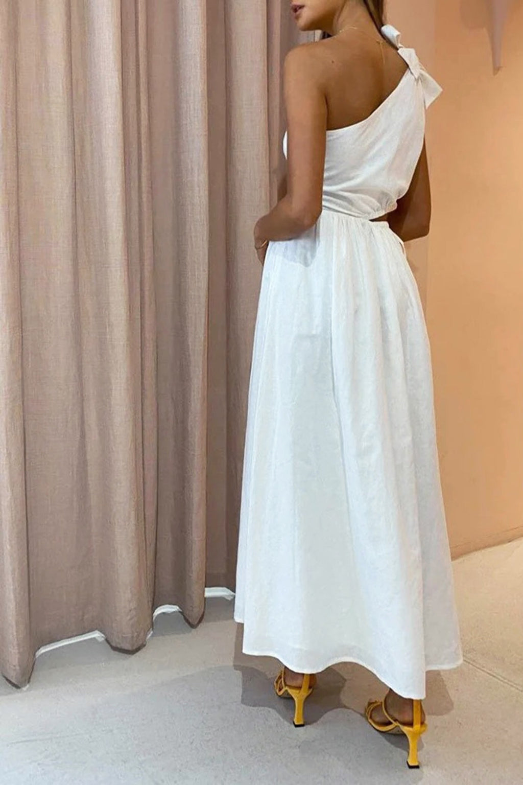 The Gabriella design By Nicola is a stunning midi length dress. It features a one shouldered design, beautiful bow detail, cut out waist design with gathering, elastic & ties for a perfect fit.