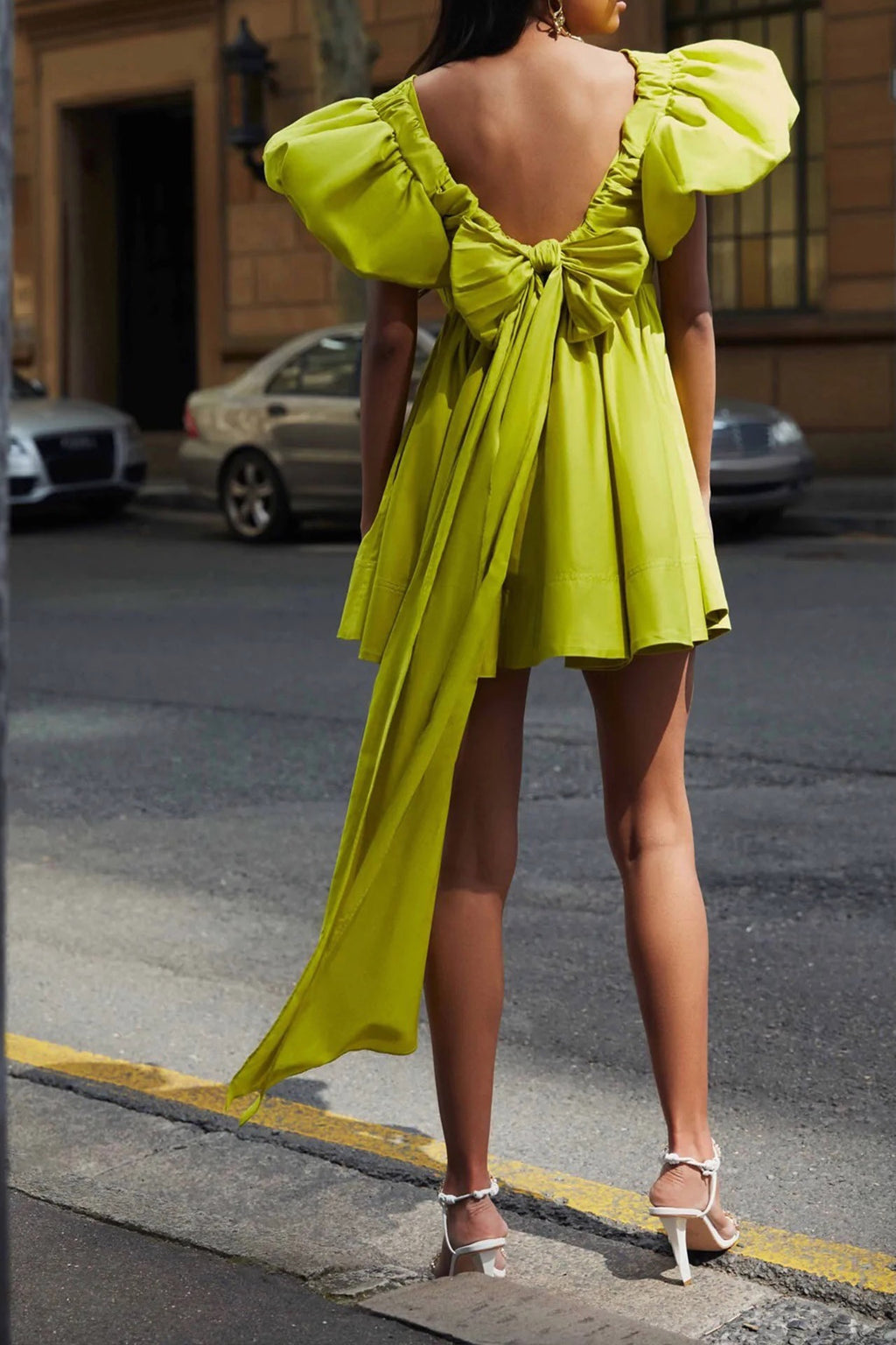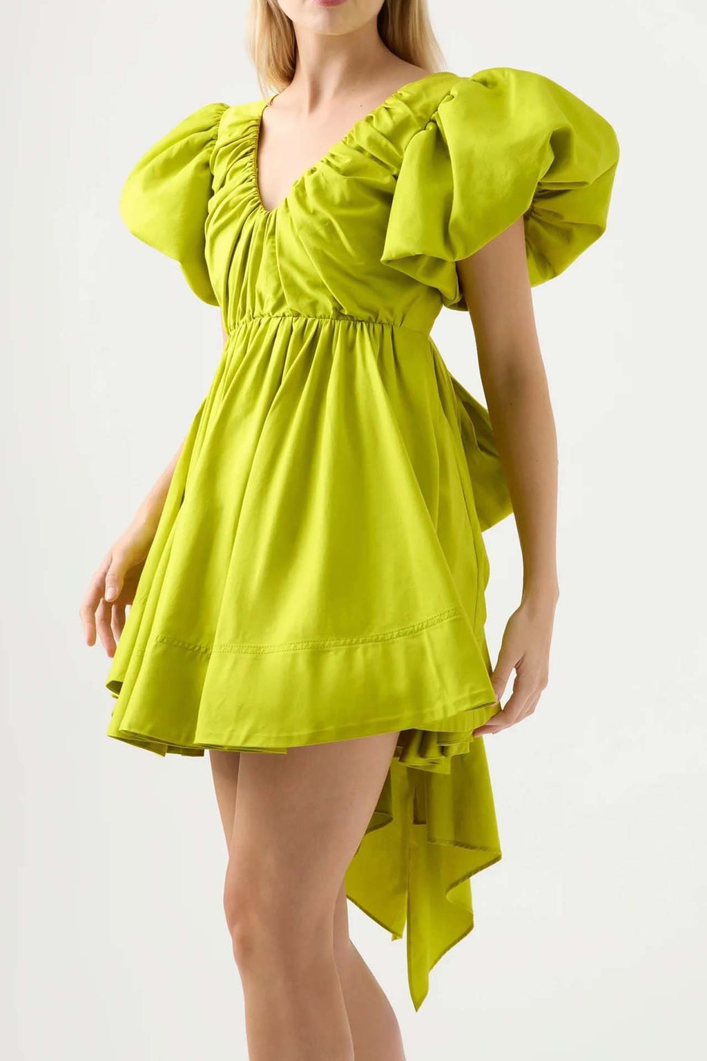 A stunning mini by Aje. The Gretta features a fitted bodice with deep scoop front & back. It has gorgeous tulip sleeves, stunning long bow to tie at the back & is gathered throughout.