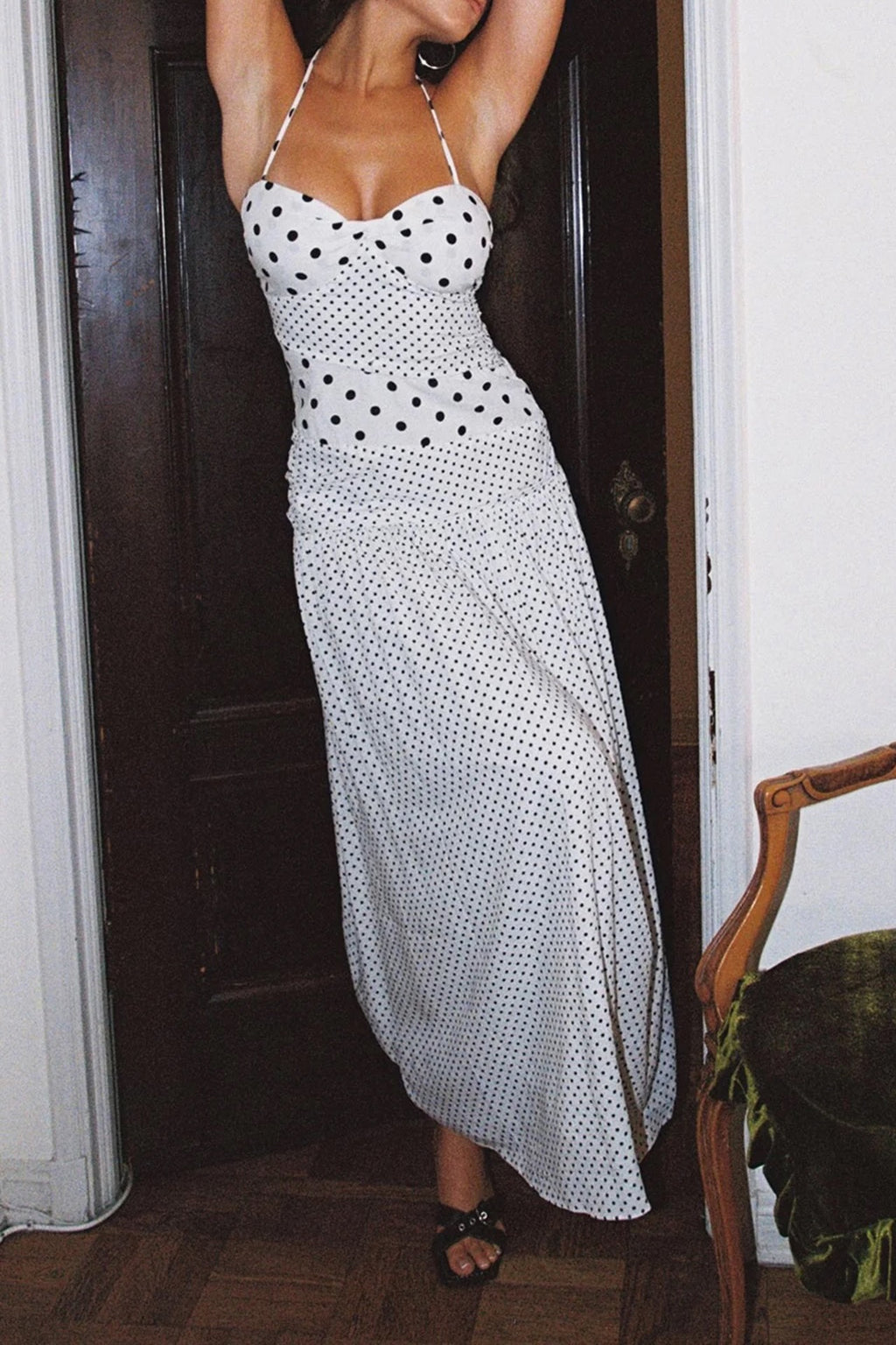 Marguerite Halter Maxi Dress White Polka