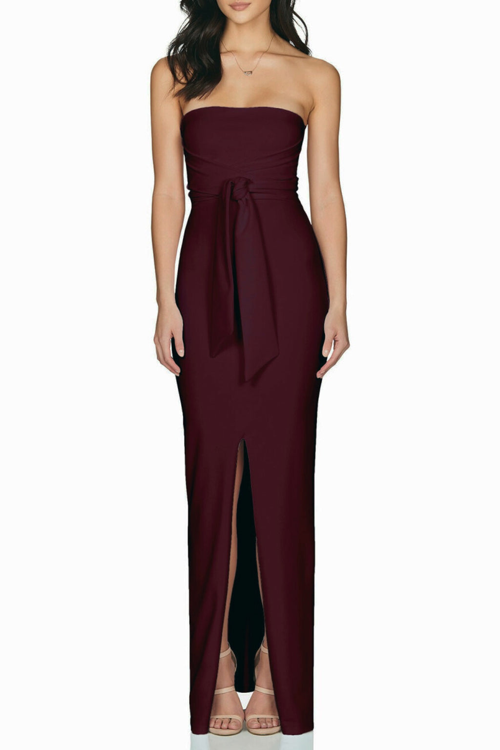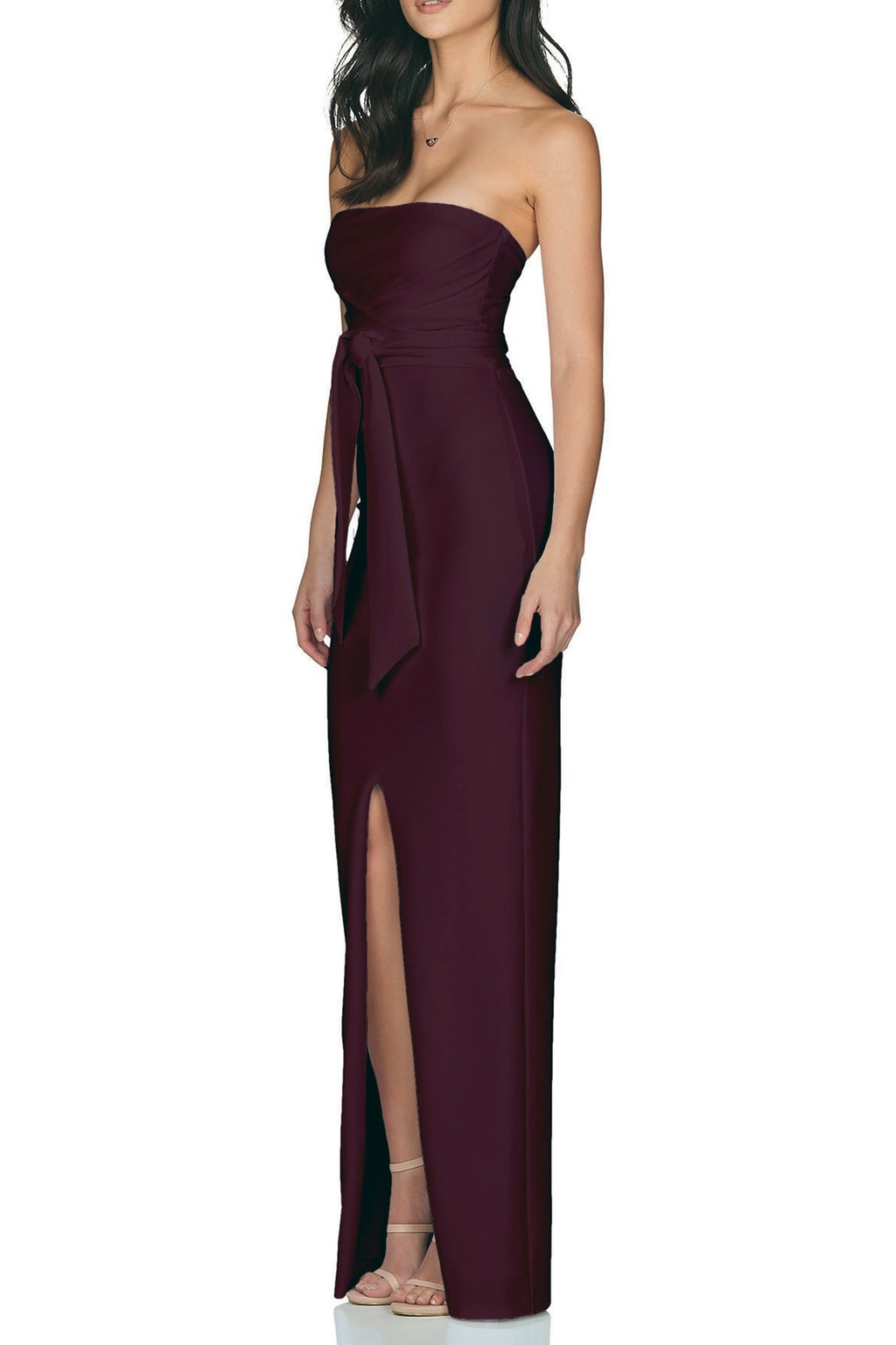 The Royal is a stunning strapless gown by Nookie with cross over panels at the front, a waist tie to cinch in your waist and is finished with a high centre front split. This floor skimming gown is crafted in Nookie’s signature scuba crepe fabric ensuring a firm fit. It is fully lined and fastens with invisible zip at back.